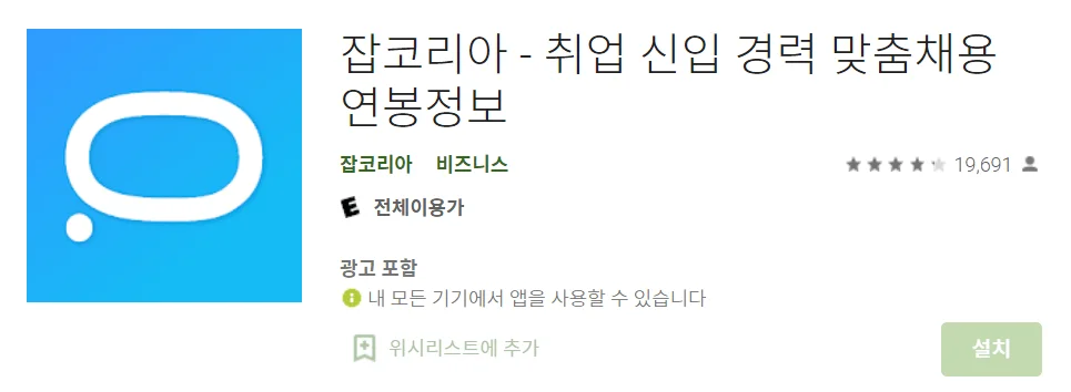 국내 500만명 이상이 잉요하고 있는 어플로 평균 연봉 1억원 이상 회사, 주 4일 근무 기업 등 특정한 근무형태를 가진 기업을 확인 해 보실 수 있으며 지역별 직업별 top100 회사를 추려 추천 해 주기도 하는 기능이 있습니다.